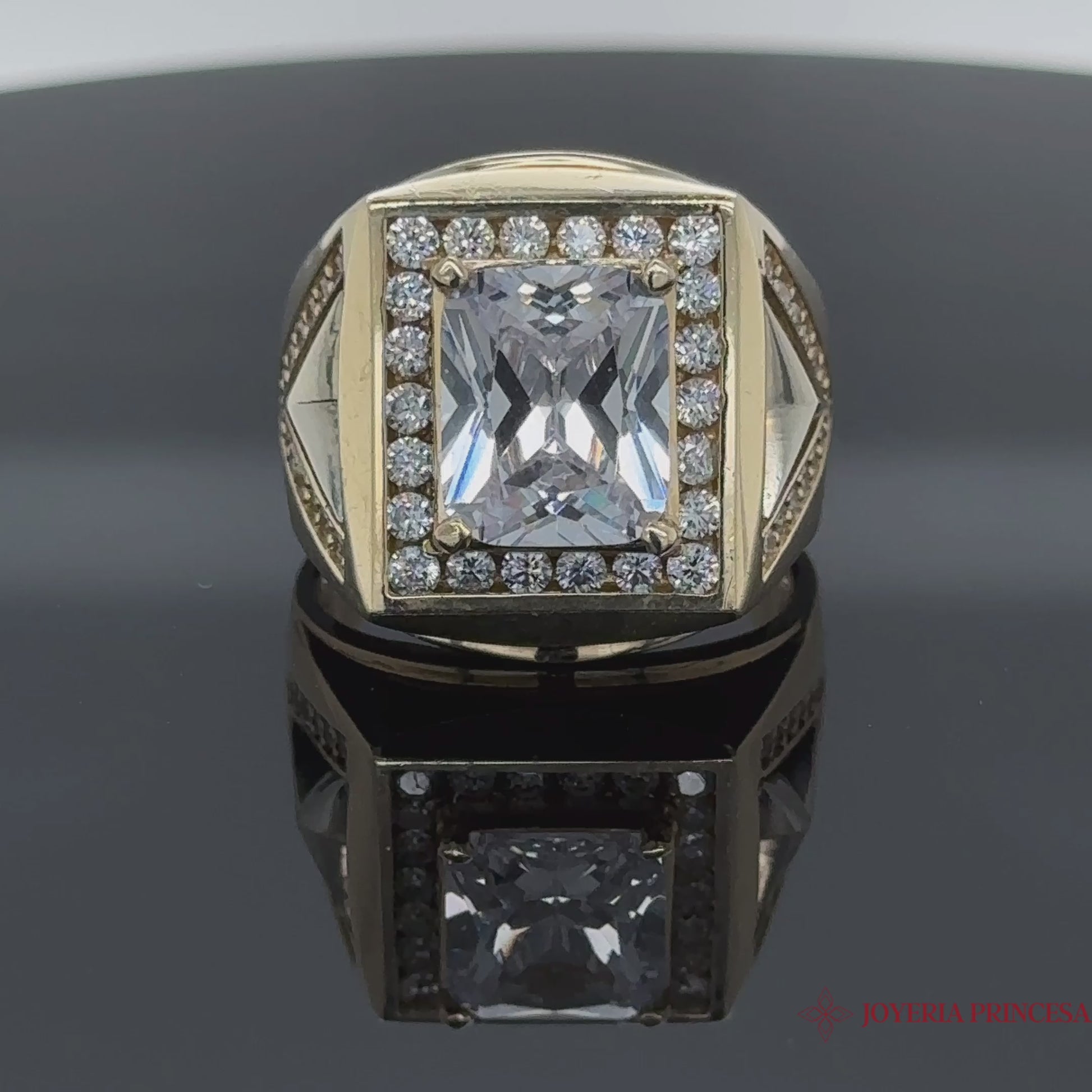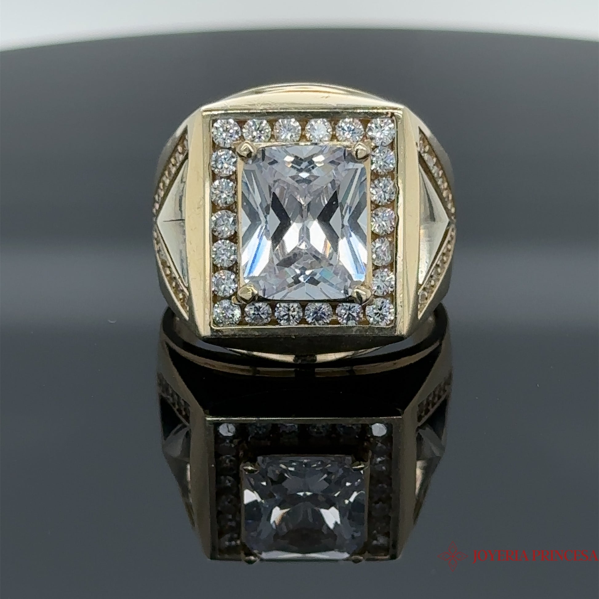 Anillo de oro de 14 quilates para hombre con circonita cuadrada