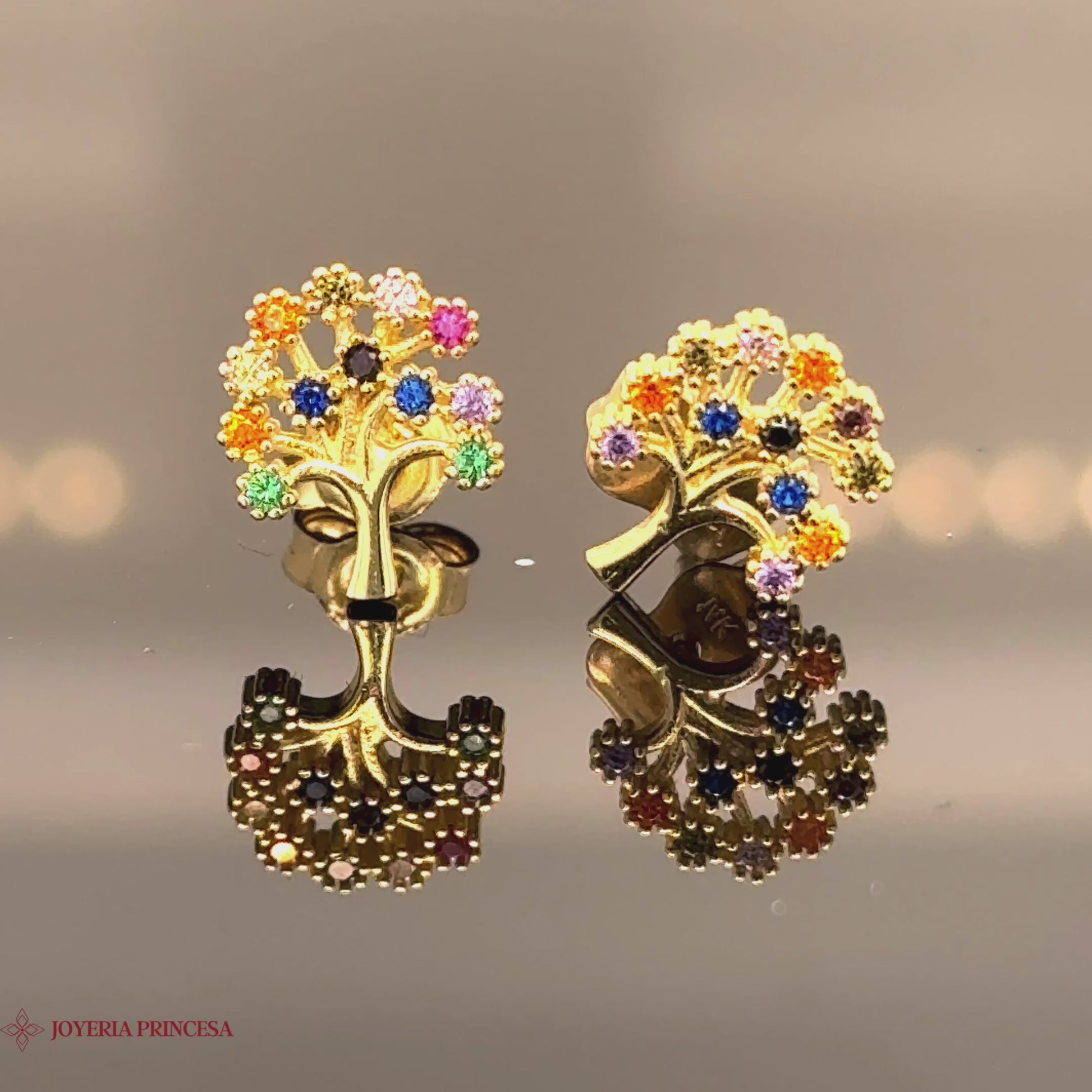 Añade alegría y creatividad con los vibrantes Aretes árbol de oro de 14 quilates. Con diversas tallas de gemas, cierre de poste seguro y caprichoso motivo de diseño.