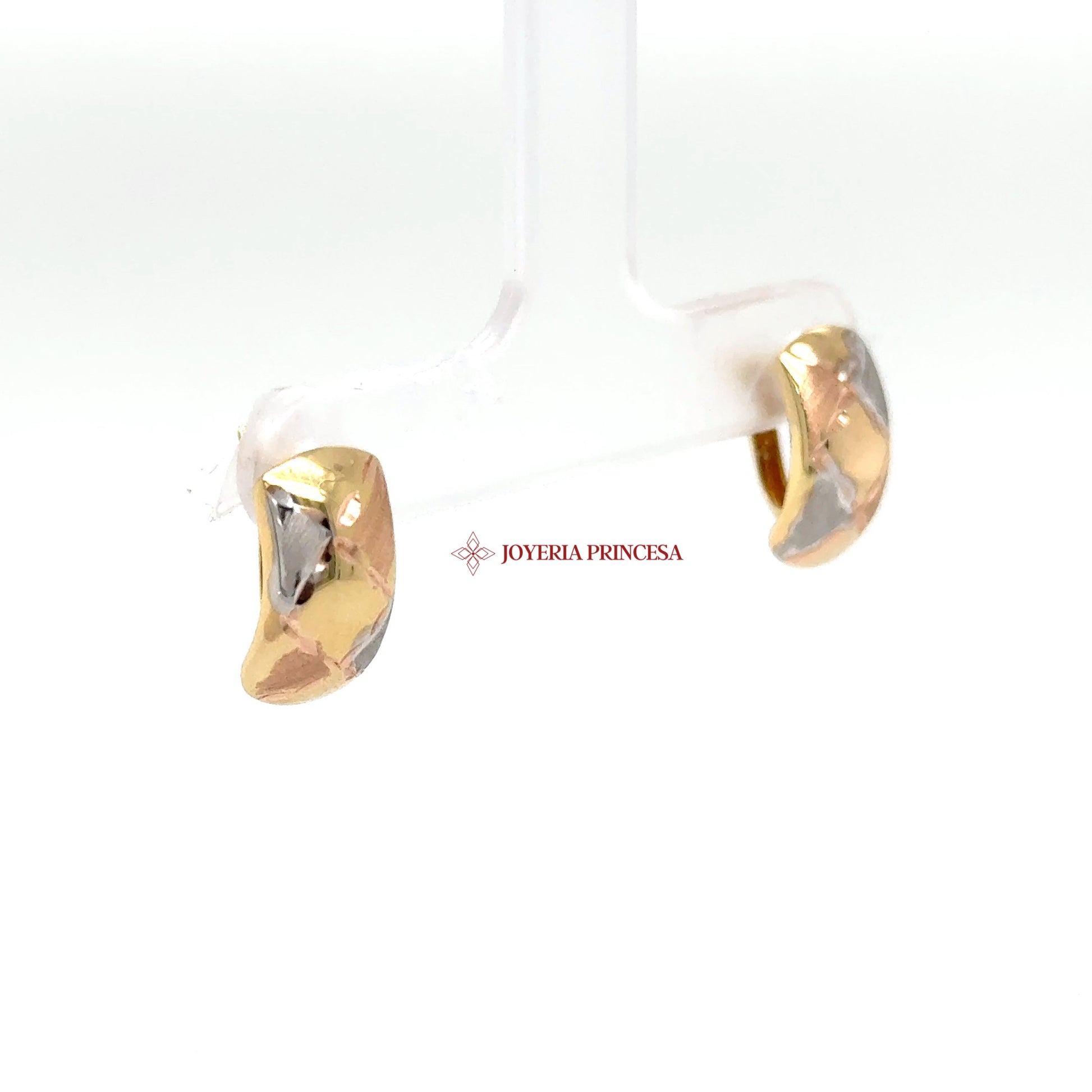 ES: Eleva tu estilo con estos impresionantes aretes huggie tricolor, perfectos para cualquier ocasión.