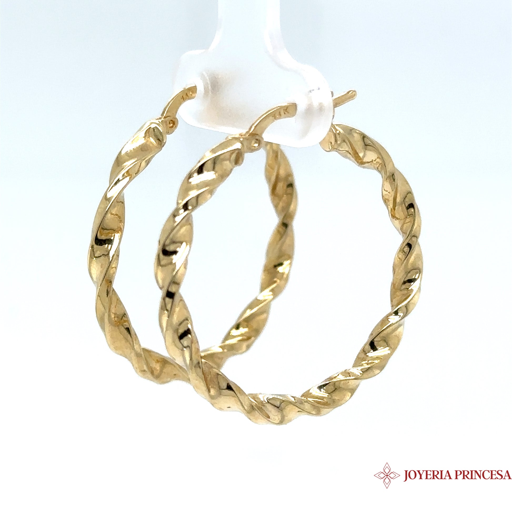 Estos elegantes y versátiles Aretes de aro trenzado de oro de 14 quilates son perfectos para cualquier ocasión. Con su diseño único y su artesanía de alta calidad, seguro que aportan un toque de elegancia y sofisticación a cualquier atuendo.
