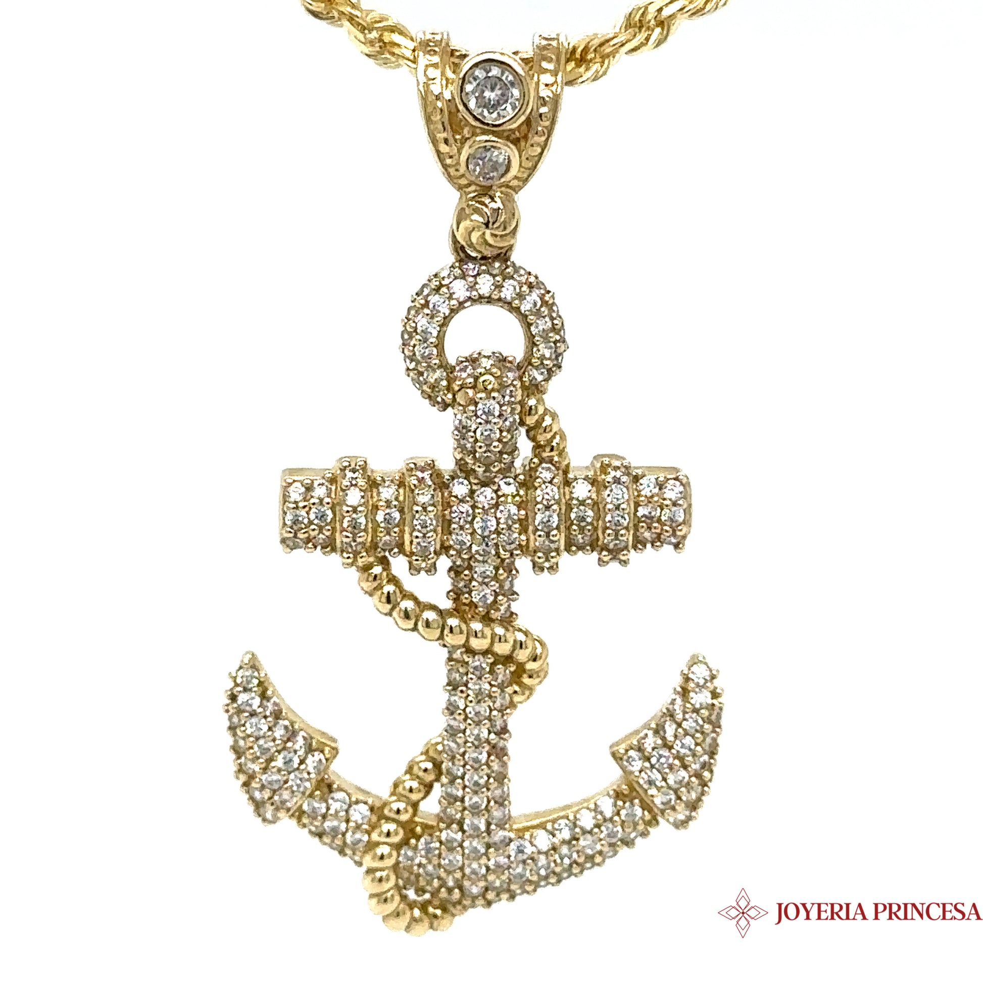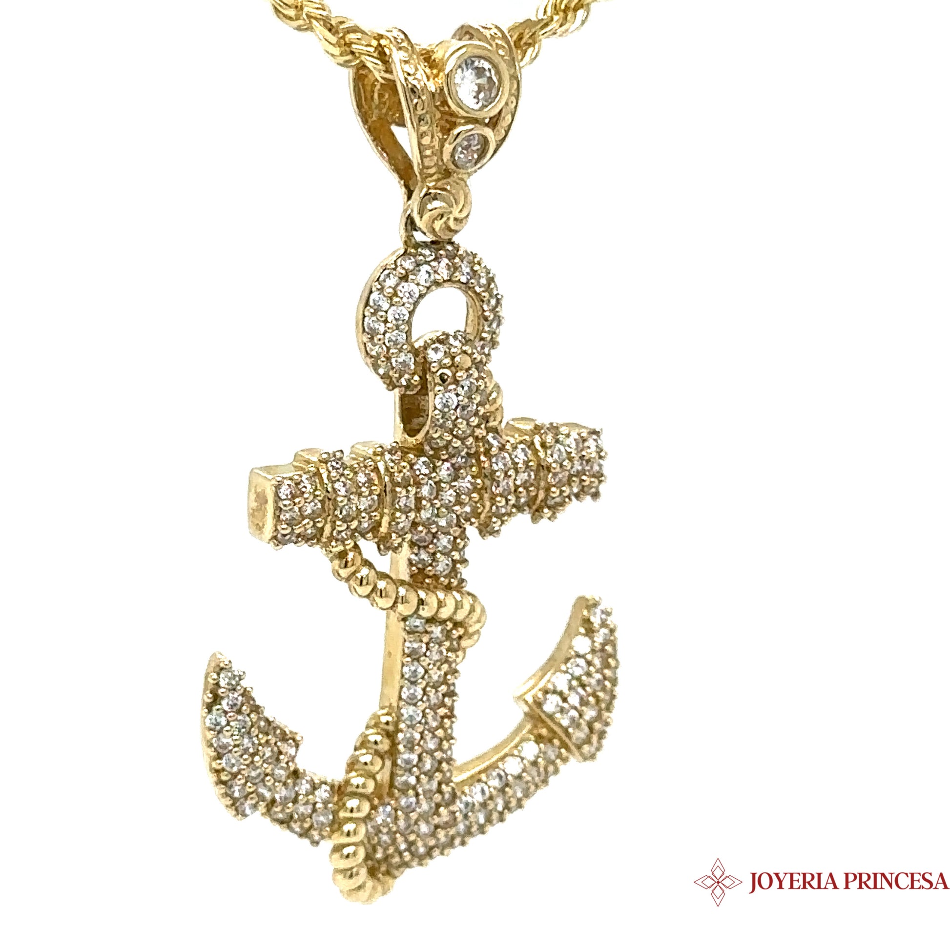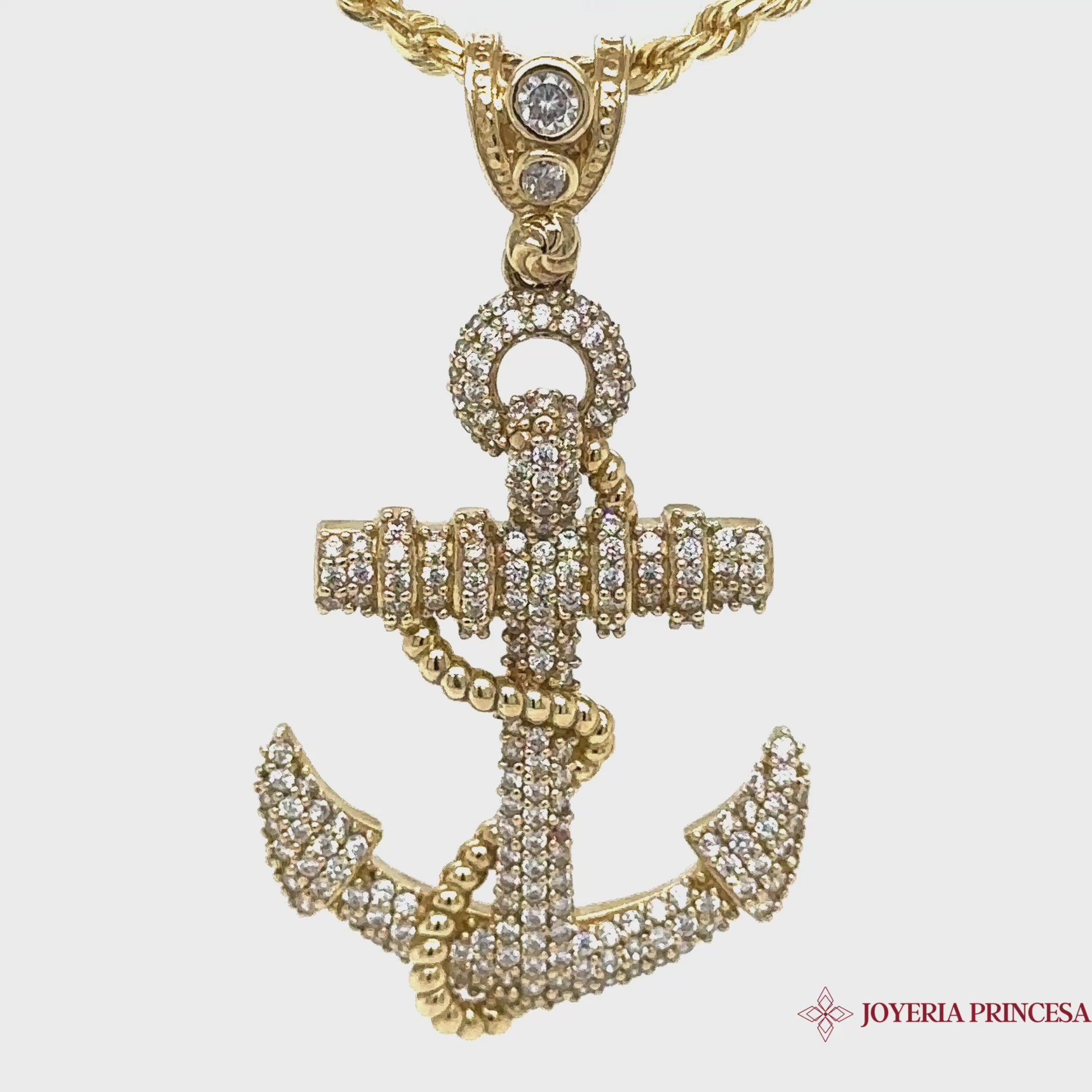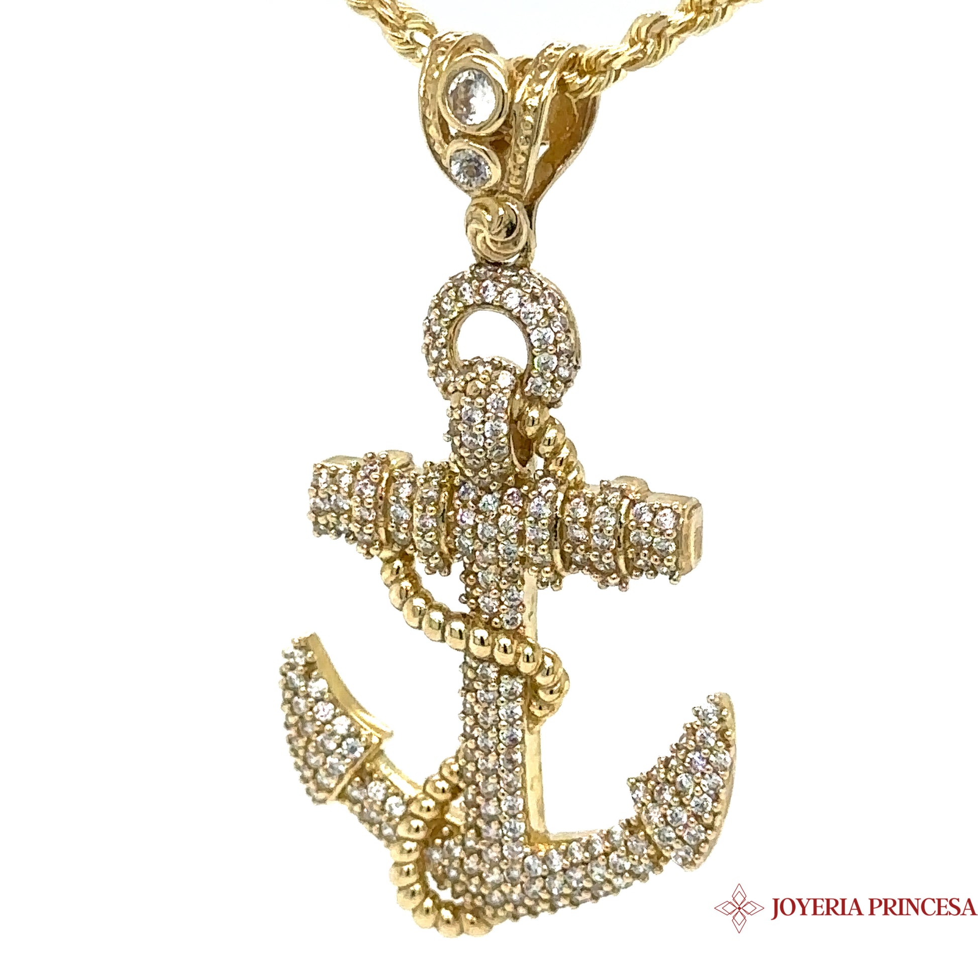 Muestra tu fe inquebrantable con esta cruz de ancla de 10 quilates rellena de circonitas. El diseño del ancla simboliza fuerza y estabilidad, mientras que los detalles de circonita añaden un toque de brillo. Esta pieza única es perfecta para aquellos que buscan una expresión distintiva de devoción.