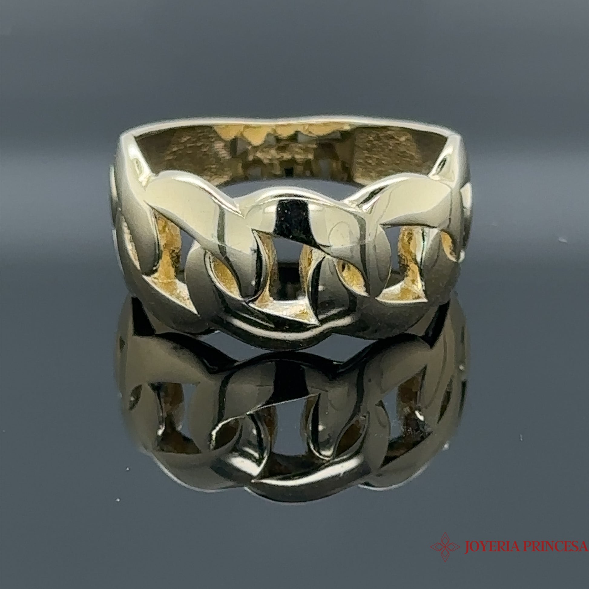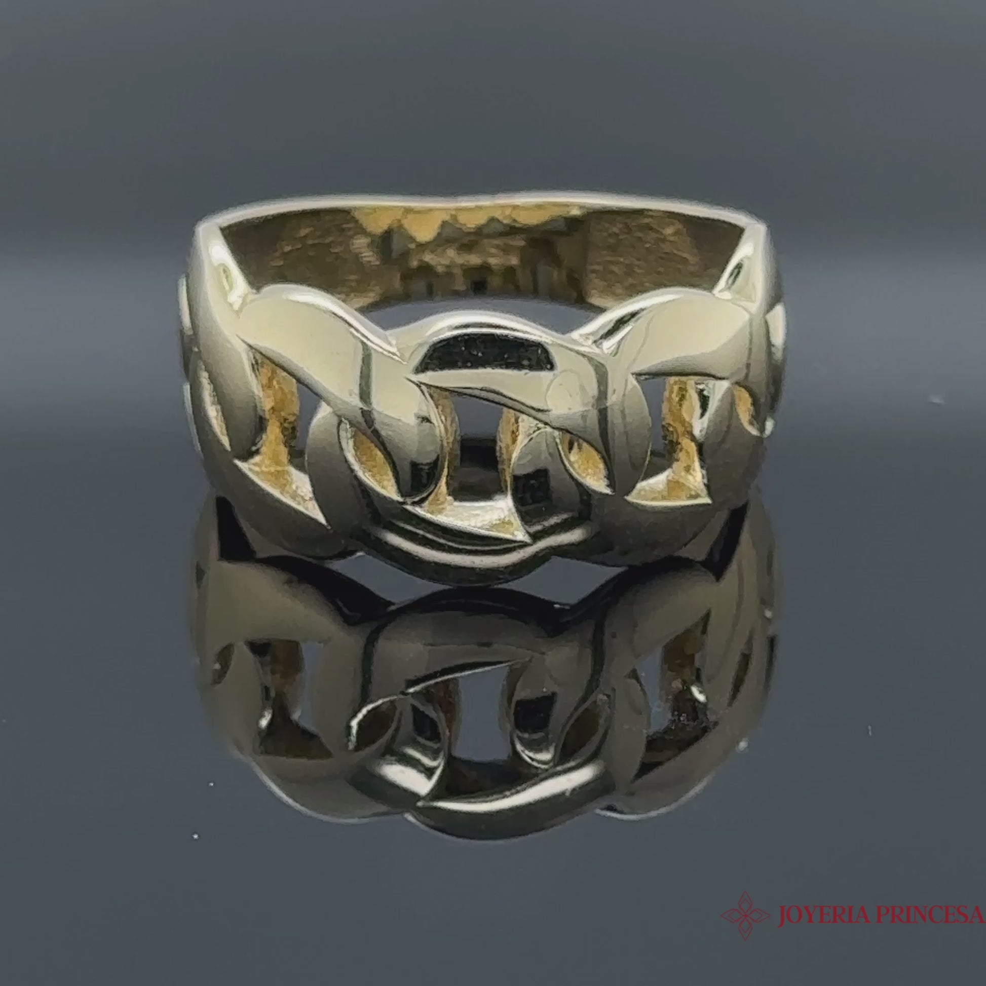 Abrace la esencia de la elegancia moderna con este exclusivo anillo estilo cadena de 14 quilates. La brillante banda de oro, expertamente elaborada para asemejarse a una delicada cadena, crea una pieza minimalista que simboliza el vínculo inquebrantable del amor y el compromiso.