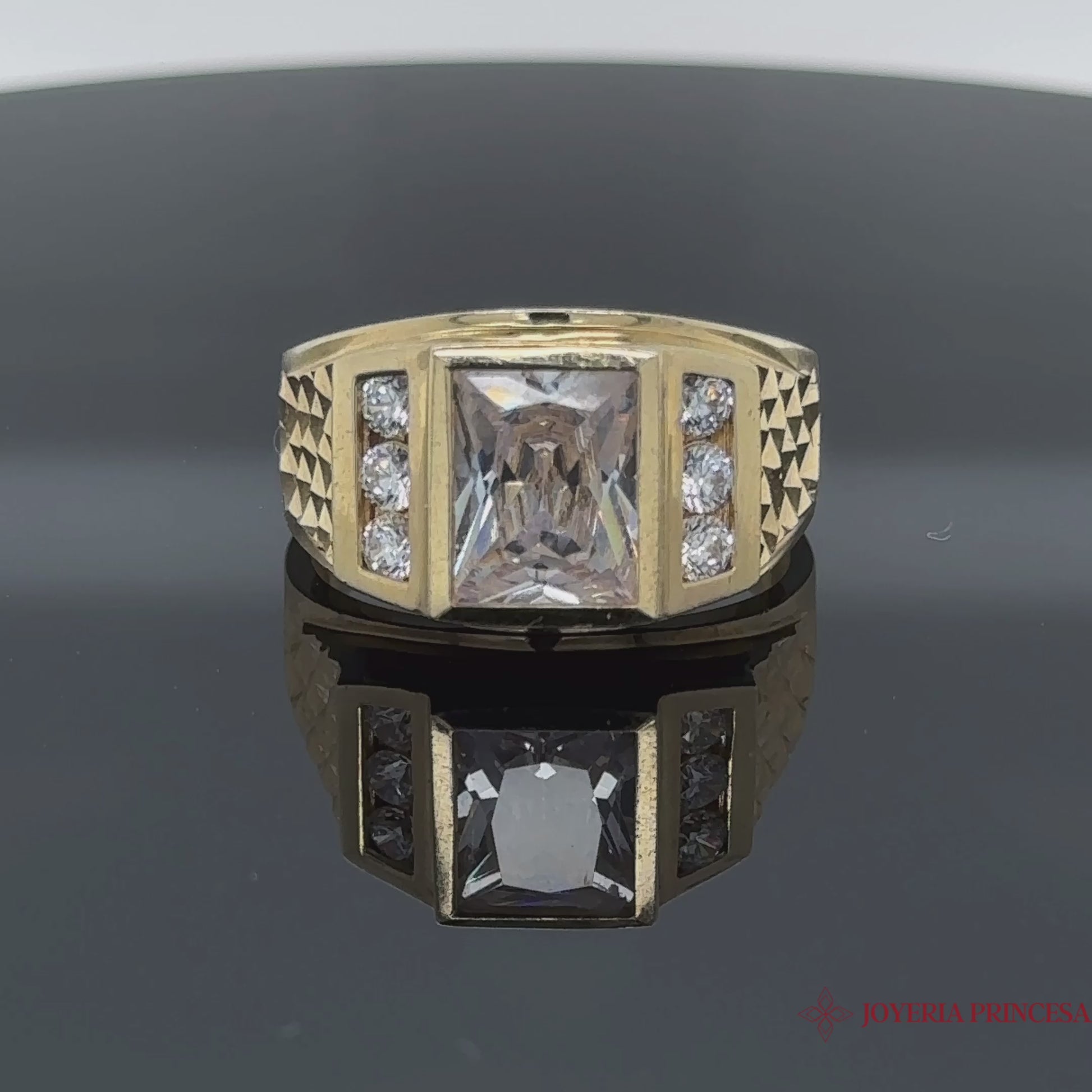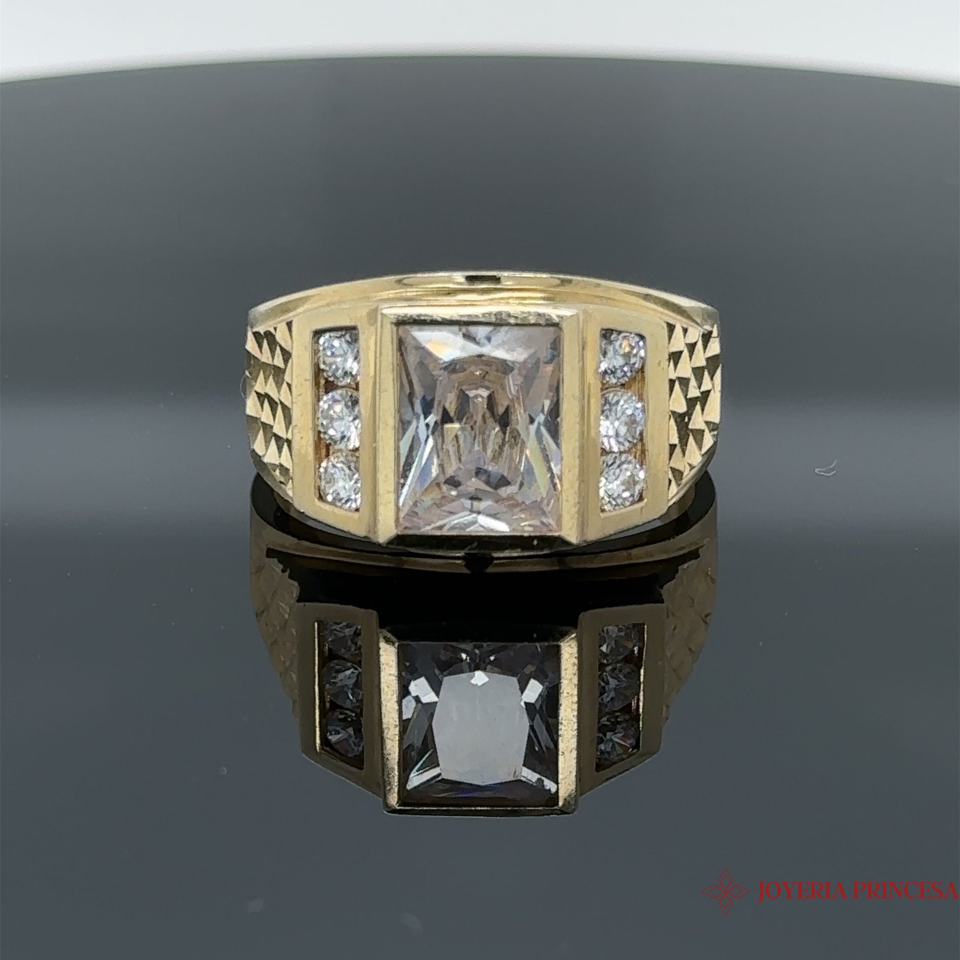 Anillo para hombre de 14 quilates con circonita cuadrada talla diamante