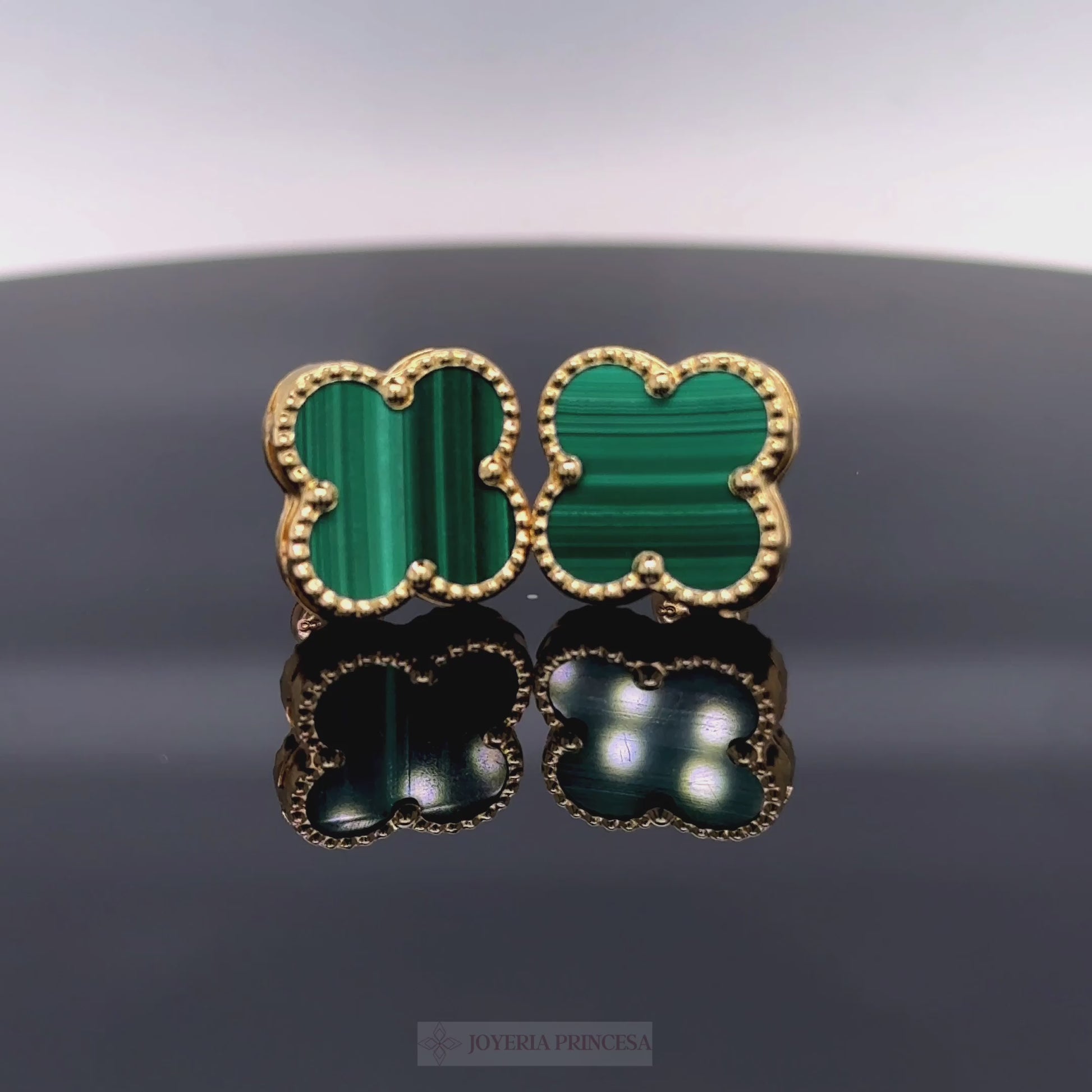 Estos elegantes Aretes de trébol verde de oro de 14 quilates/10 quilates presentan un exclusivo diseño en forma de trébol, bordeado con un delicado filo dorado. Perfectos para añadir un toque de sofisticación a cualquier atuendo.