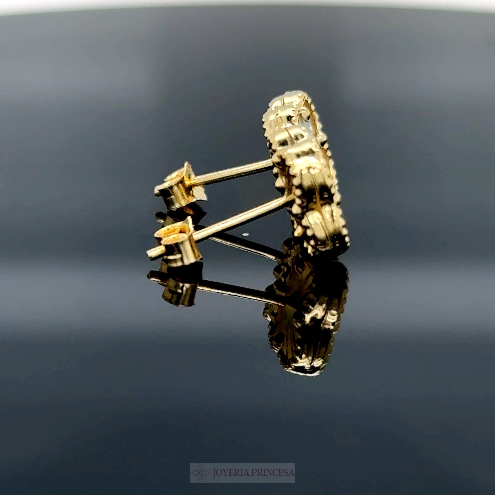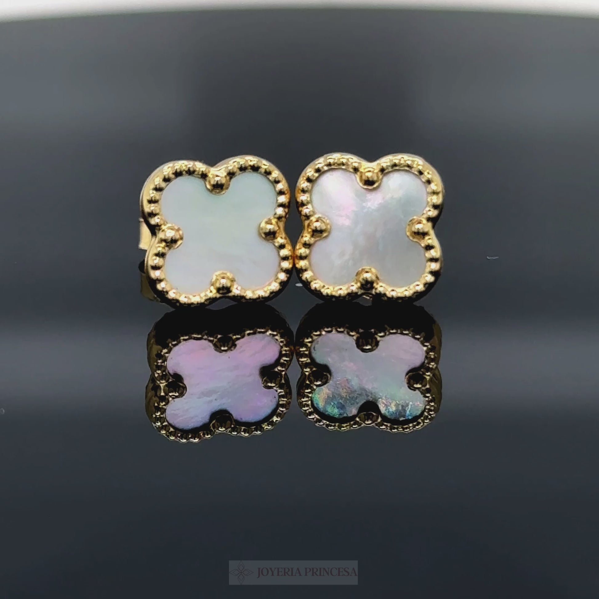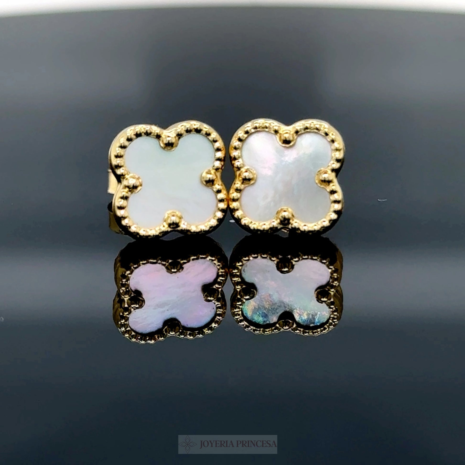 Aretes Trébol Blanco Oro