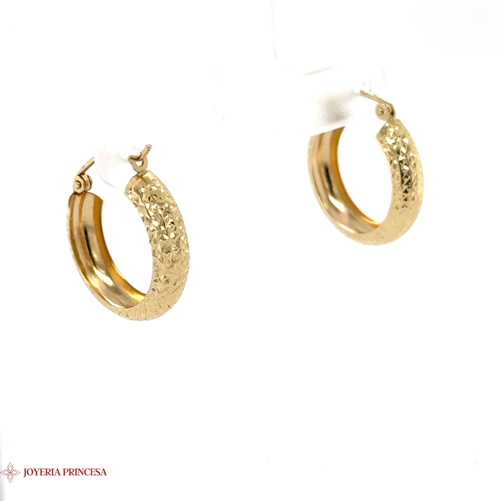 Eleve su estilo con los Aretes de aro de oro de 14 quilates: diseño texturizado para juegos de luces. Ideal para todas las ocasiones, cierre post-back seguro, elegancia versátil.