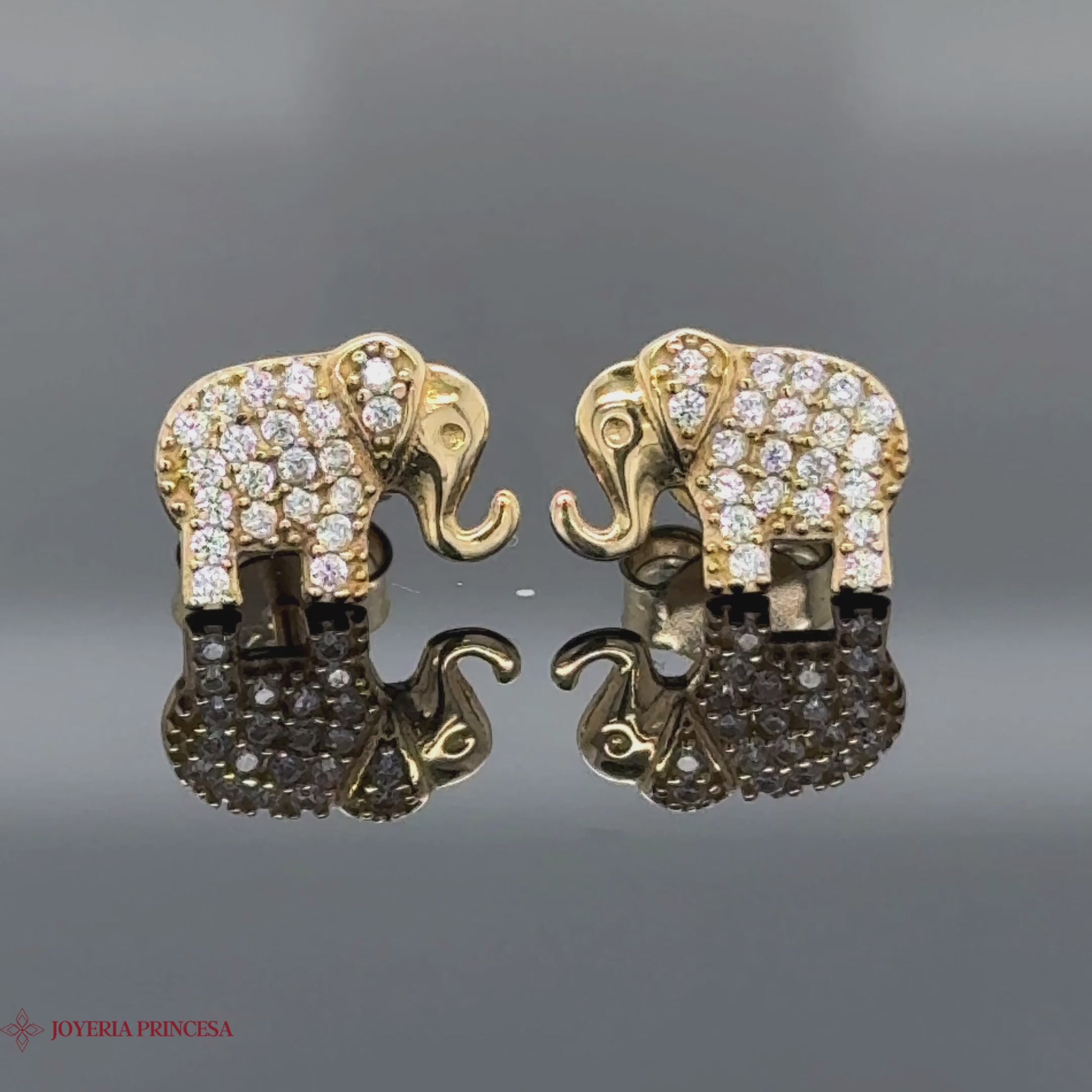 Los Aretes de oro de 14 quilates con forma de elefante simbolizan la fuerza y la sabiduría con piedras brillantes que ofrecen detalles intrincados.