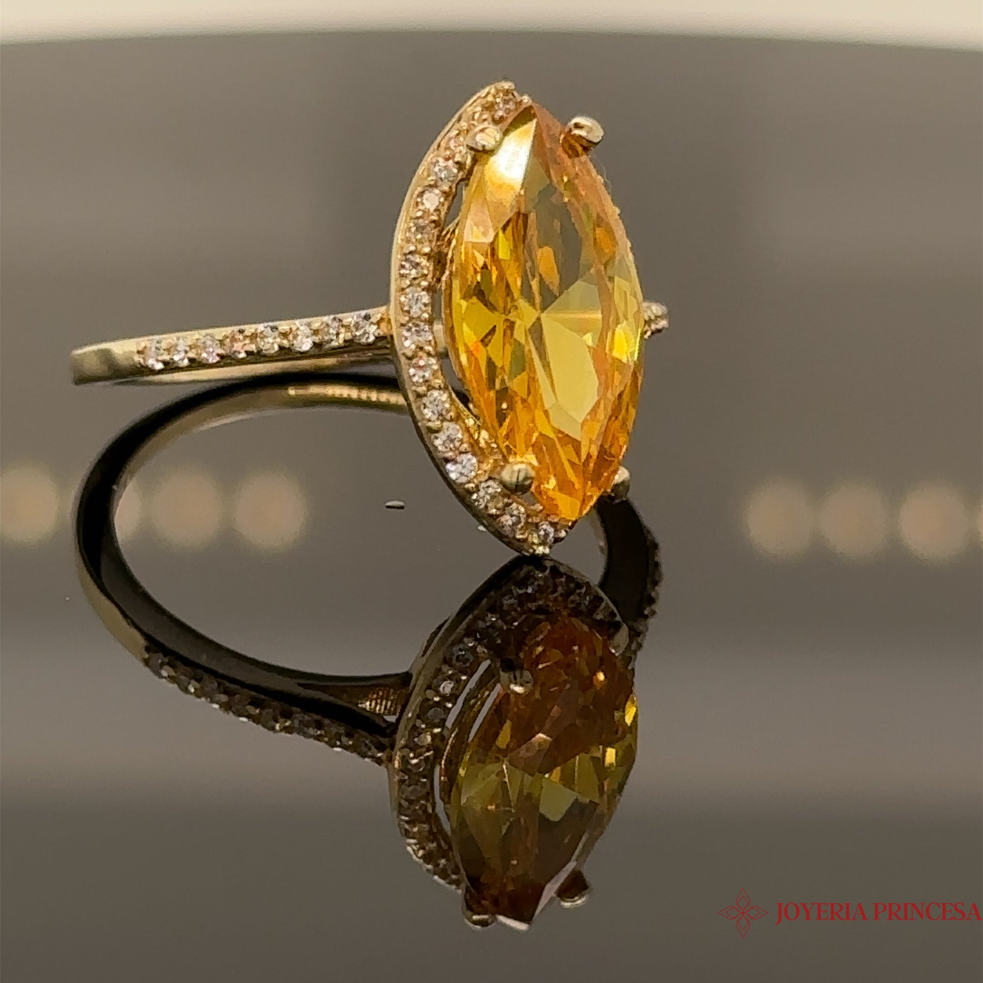 Llama la atención con este anillo de 14 quilates con circonita marquesa y topacio. El topacio de talla marquesa alargada, rodeado de circonitas brillantes, crea un diseño llamativo que es a la vez sofisticado y único, asegurando que va a llamar la atención donde quiera que vaya.