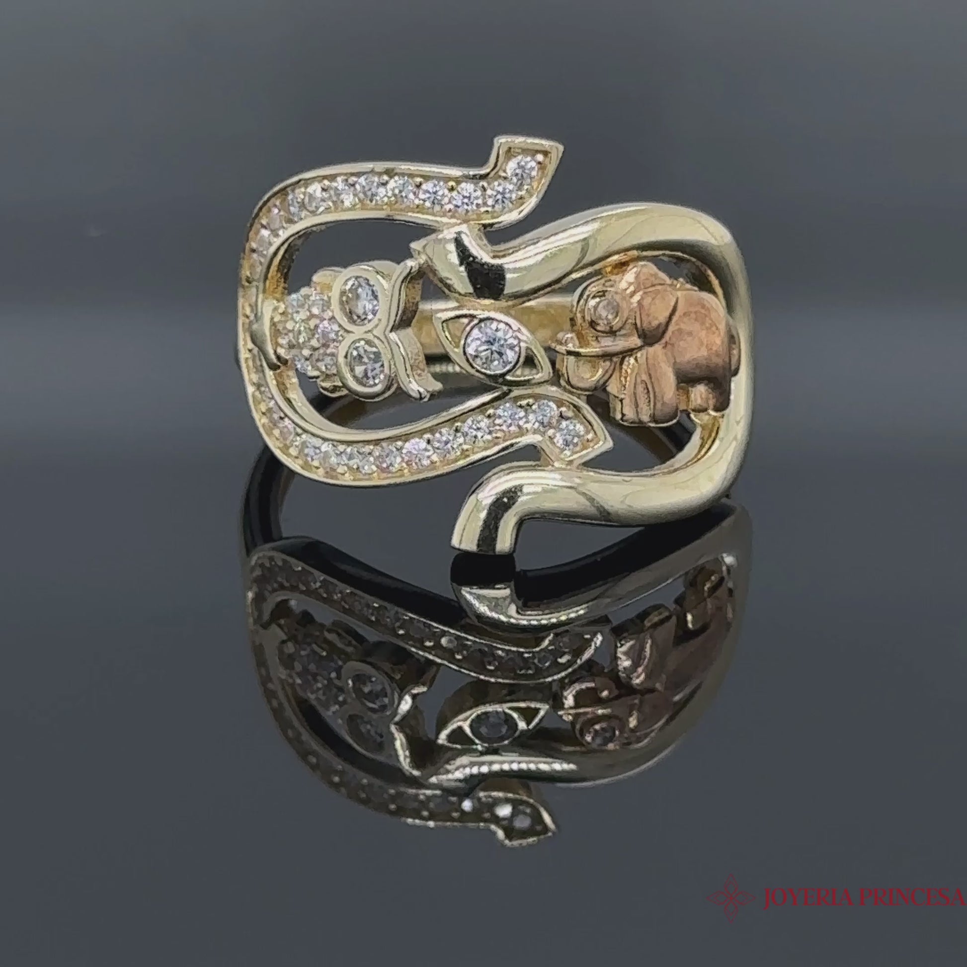 Invoca la buena fortuna y la sabiduría con este anillo de la suerte Búho-Elefante de 14 quilates, único en su especie. Con el sabio búho y el fuerte elefante representados en el diseño, tendrás un recordatorio diario para abrazar la inteligencia y la resistencia en todos los aspectos de la vida.