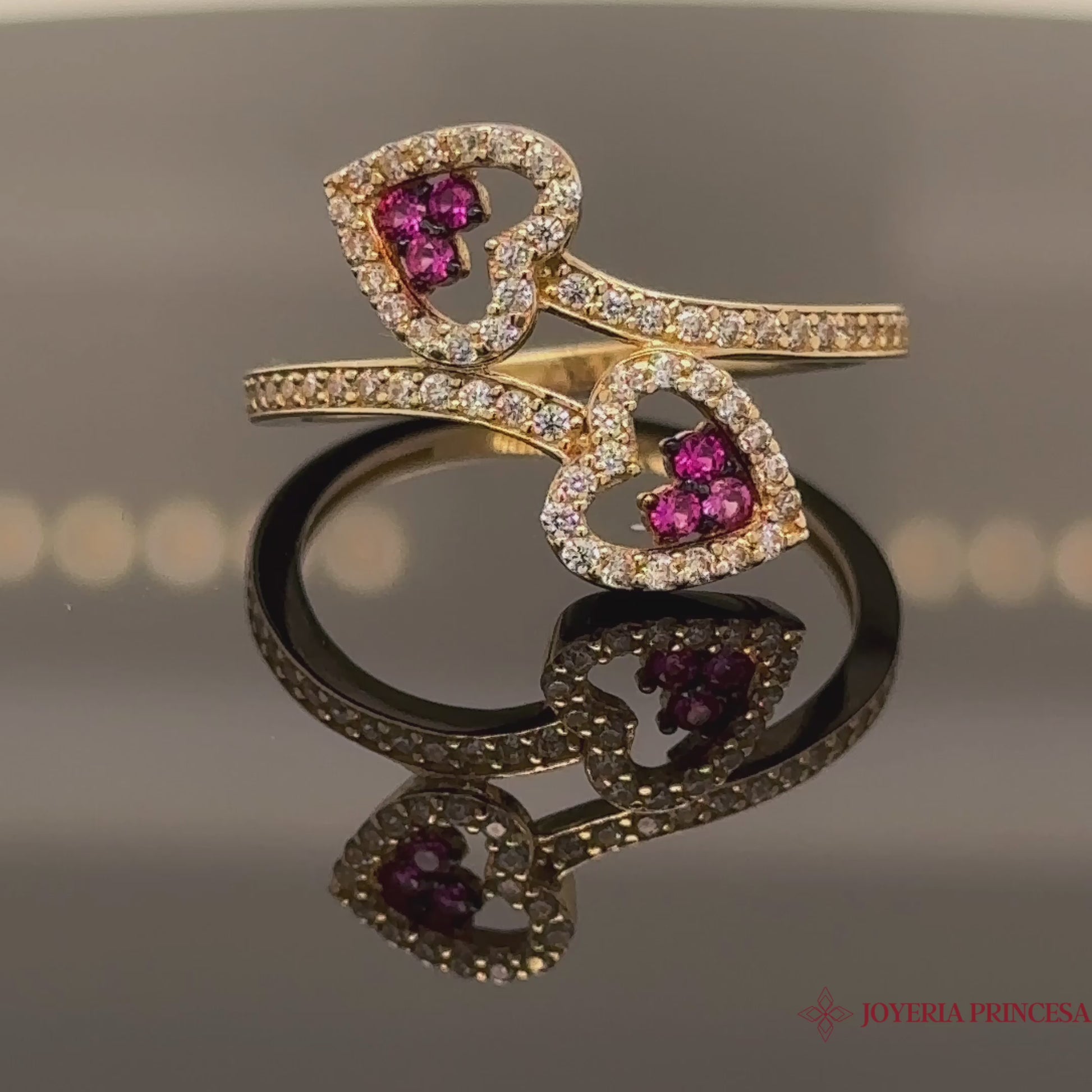 Eleva tu look con el Anillo Corazón Direccional Rosa de 14 quilates con dos corazones rosas que le dan un toque caprichoso. Elaborado en oro rosa de 14 quilates, es perfecto para los amantes de los accesorios divertidos.