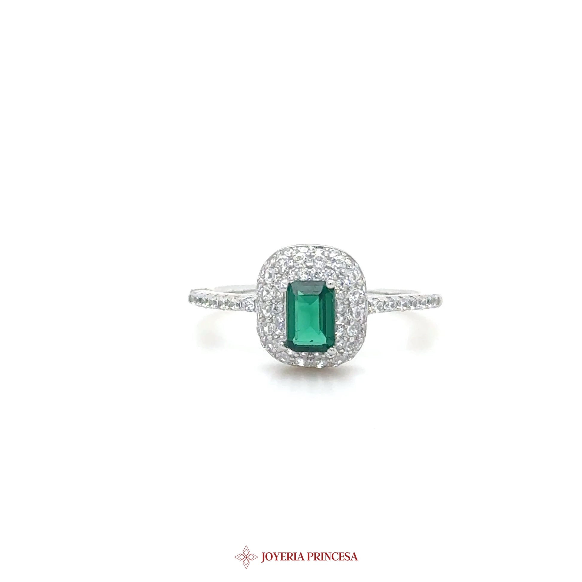 EN: This stunning silver ring features an emerald motif surrounded by sparkling CZ accents. • Elegant design • Durable silver construction • Perfect for any occasion
