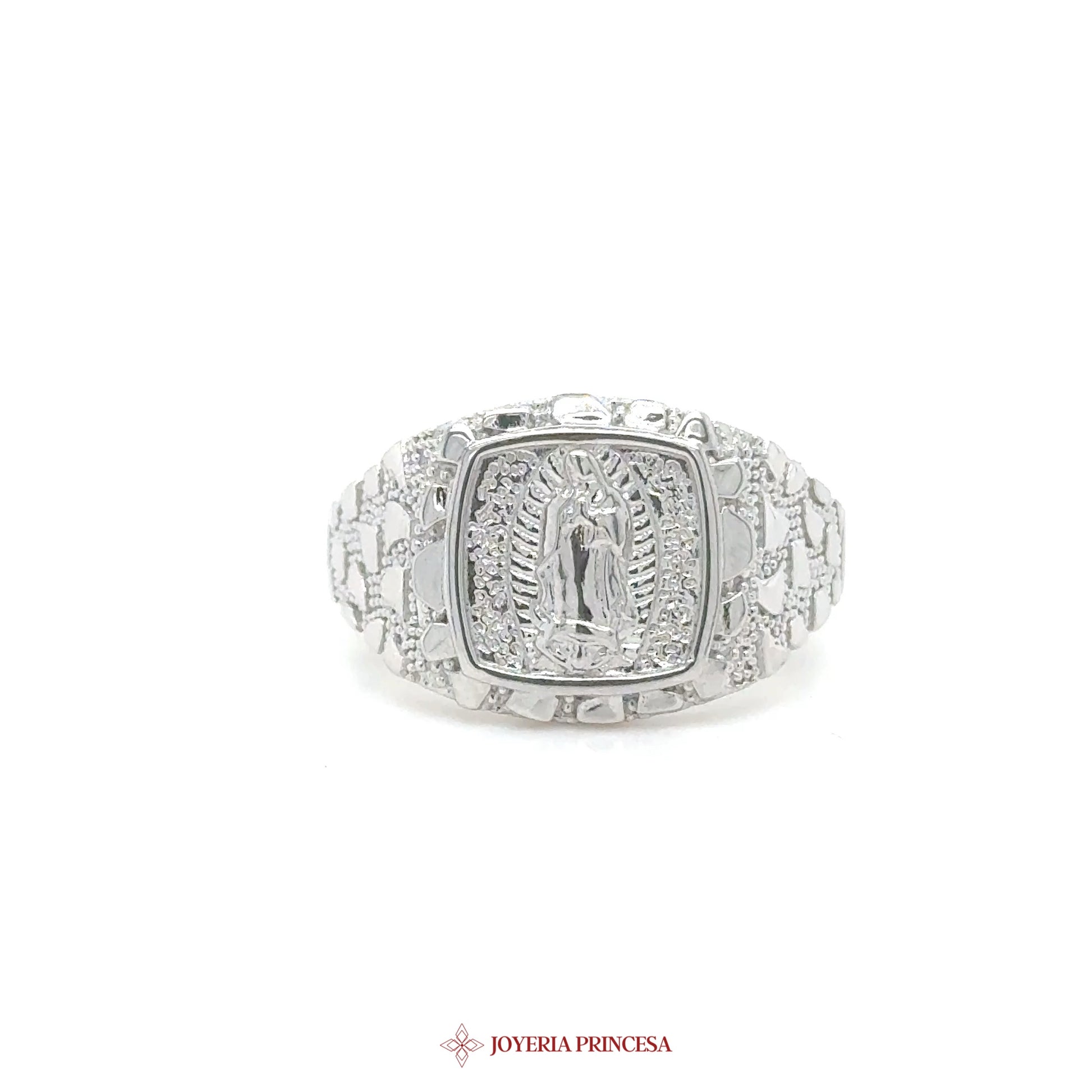 EN: Celebrate your faith with this beautiful silver Virgen de Guadalupe ring. • Crafted from high-quality silver • Features intricate Virgen de Guadalupe motif • Stylish nugget design adds a unique touch.