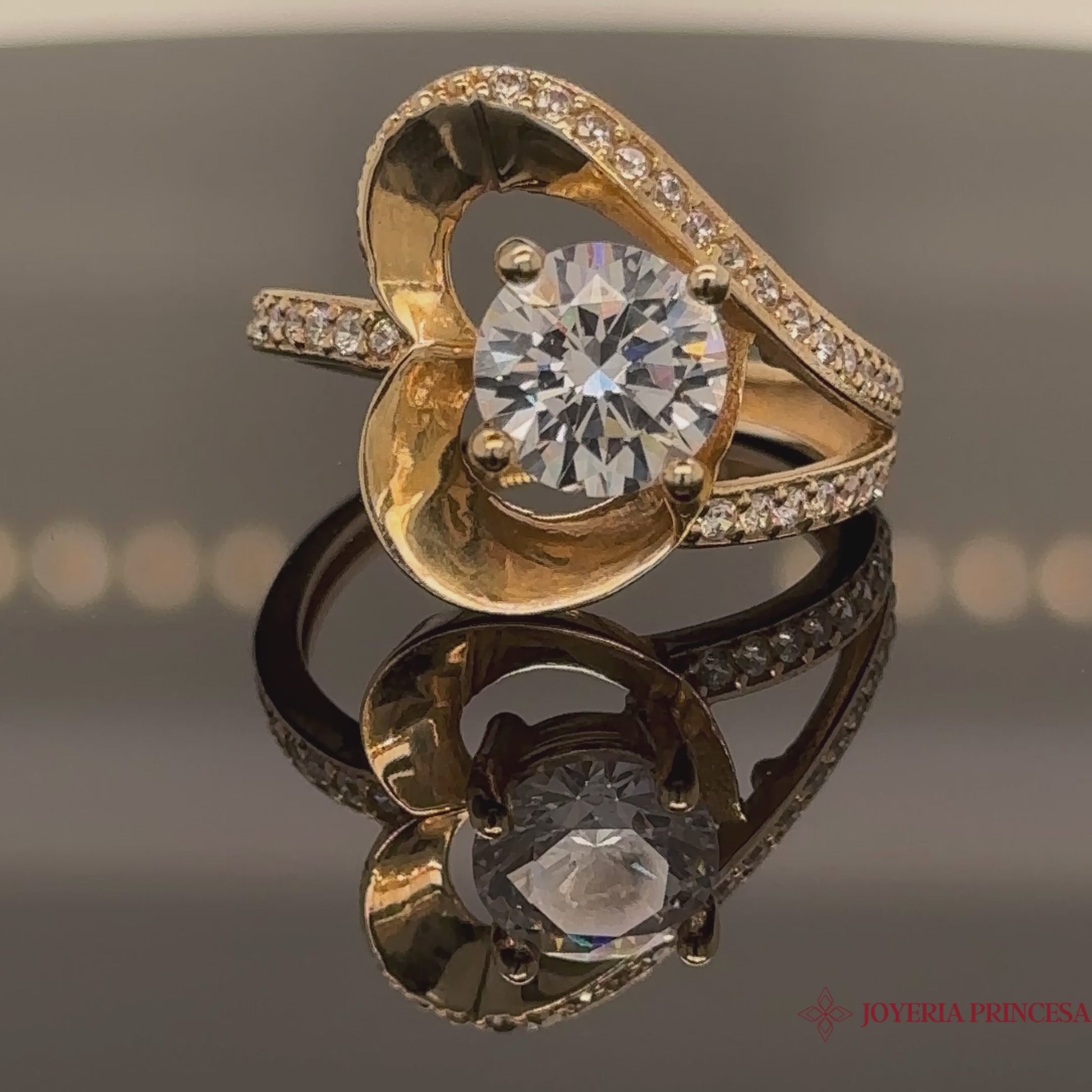 Anillo Corazón Remolino 10K con Circonita