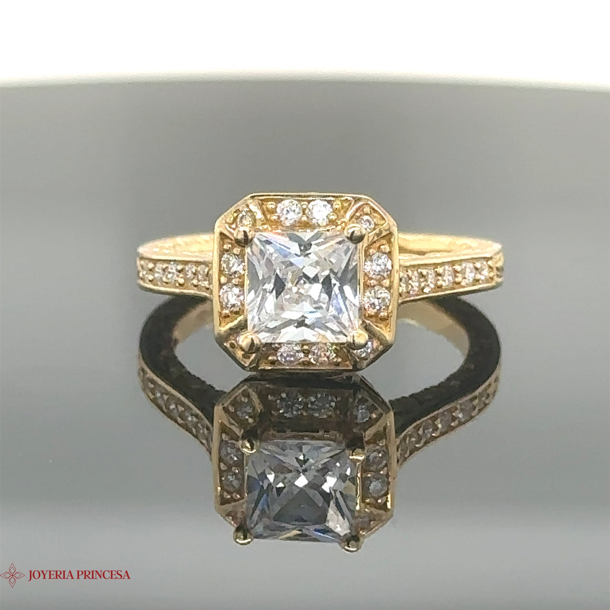 Anillo de compromiso con circonita cuadrada 14K