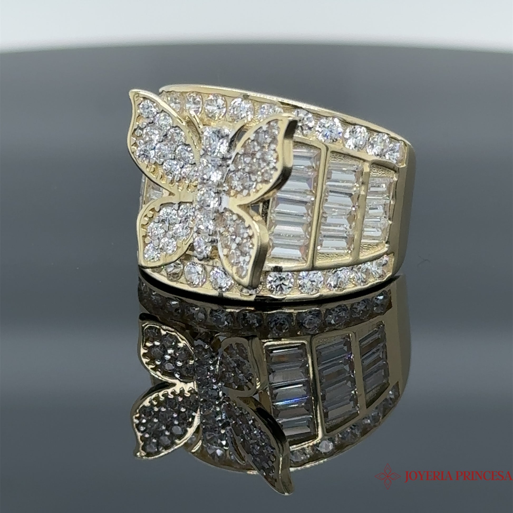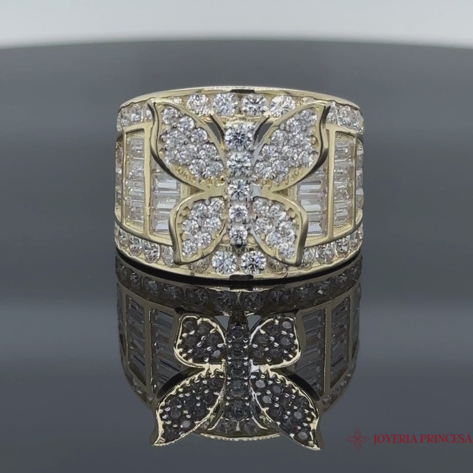 Anillo de mariposa con circonita de 14 quilates